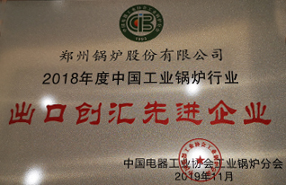 斬獲2018年度中國(guó)工業(yè)鍋爐行業(yè)“出口創(chuàng)匯先進(jìn)企業(yè)”。